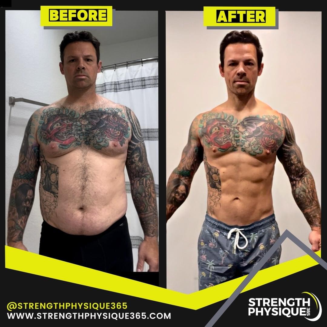 Despite the challenges of work, travel, and back injuries hindering any serious training, Oz, who had always been active and fit, found himself unhappy and frustrated with the decline in his fitness levels. In a remarkable transformation, he lost 5kg (12lbs), reduced his body fat from 20% to an impressive 9.7%, achieving the lean and muscular look he so admired.
